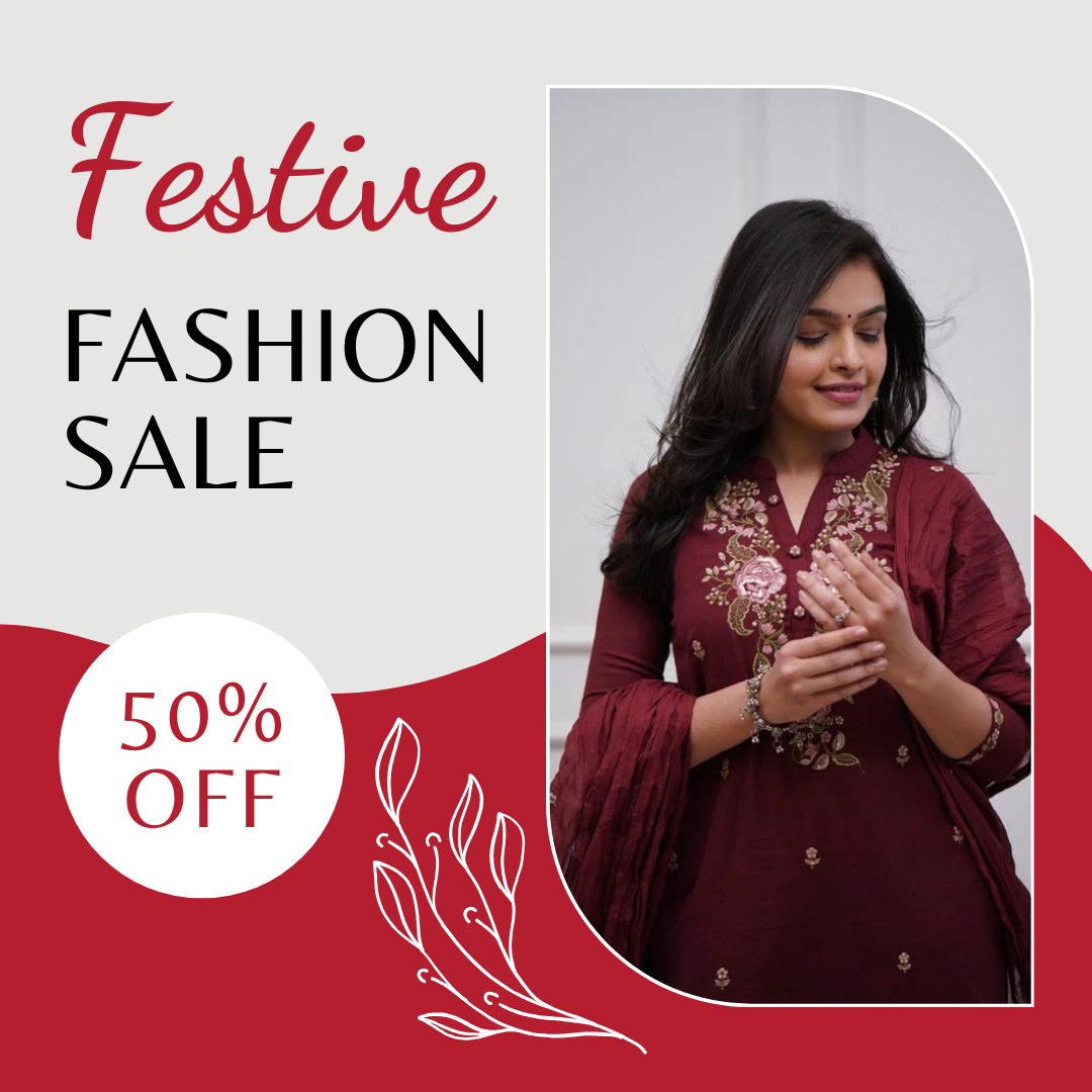 Maroon-licious thread embroidered 3pc kurta set