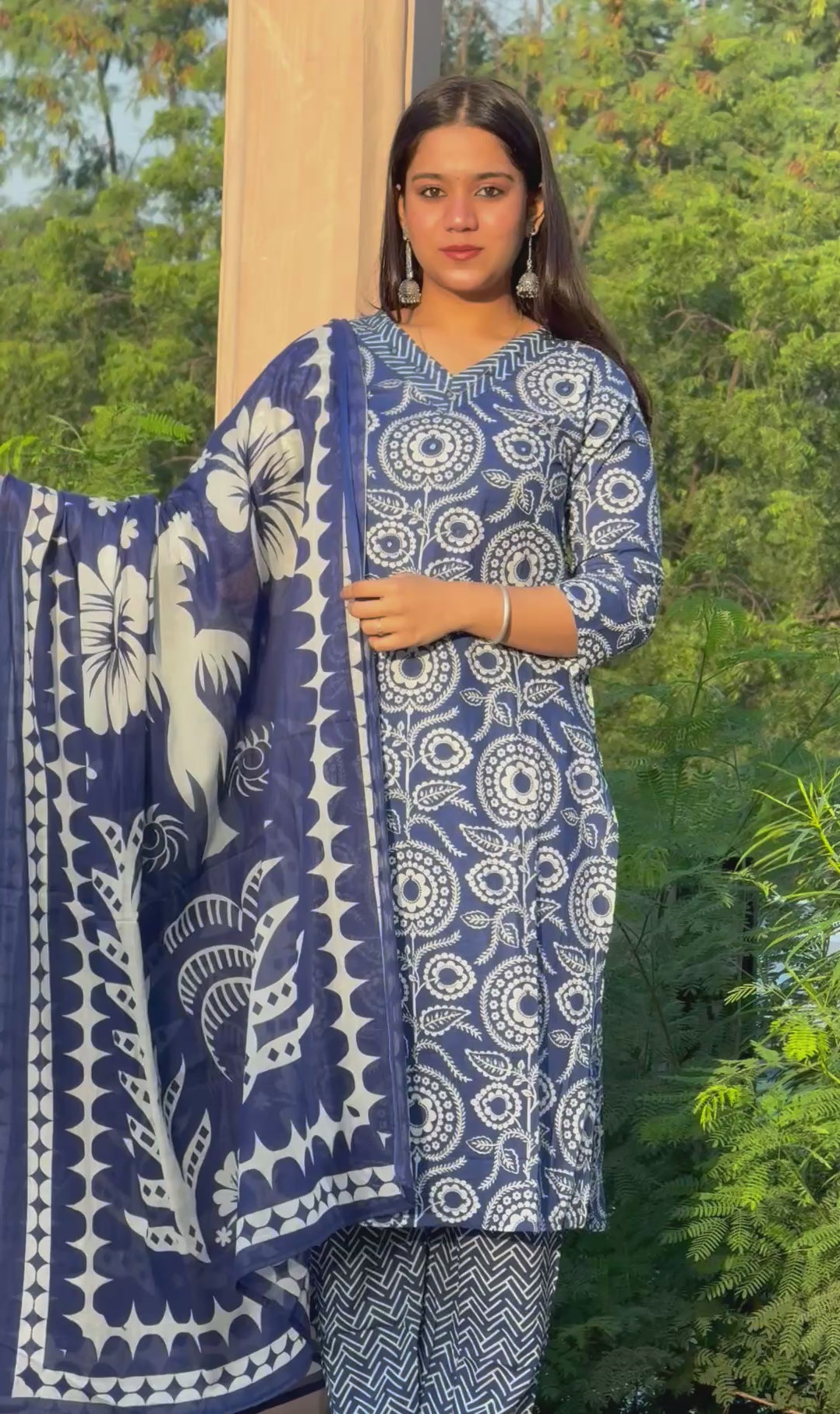 This royal blue A-line kurta set presents a refined choice for discerning customers seeking authentic ethnic wear. The three-piece collection showcases beautifully printed patterns that enhance the garment's visual appeal and cultural significance. The A-line cut ensures a graceful drape while accommodating various body types with ease. Ideal for weddings, festivals, and formal celebrations, this ensemble balances traditional aesthetics with wearable comfort. Each piece is thoughtfully designed to deliver both elegance and practicality for the modern wearer who values quality and timeless style.